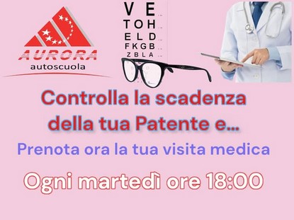 - Rinnovi patente tutte le categorie con medico in sede (ogni martedì ore 18:00) per le URGENZE faremo il possibile per fissare un appuntamento prima. ...Fissa l'appuntamento